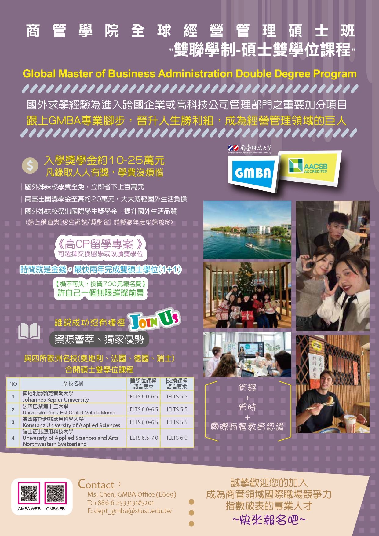 🟣可選擇就讀中文授課或英文授課課程。國籍多元化之學生結構,促成學生國際間之交流,並促進不同層次國際管理經驗之汲取。